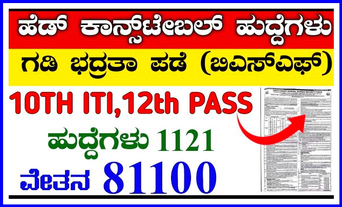 ಬಿಎಸ್ಎಫ್ ನೇಮಕಾತಿ 2025: 1121 ಮುಖ್ಯ ಕಾನ್ಸ್ಟೆಬಲ್ ಖಾಲಿ ಹುದ್ದೆಗಳಿಗೆ ಅರ್ಜಿ ಸಲ್ಲಿಸಿ.