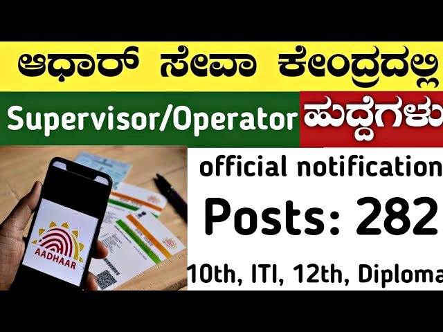 ಆಧಾರ್ ಸೇವಾ ಕೇಂದ್ರದ ನೇಮಕಾತಿ 2026 – 282 ಆಧಾರ್ ಮೇಲ್ವಿಚಾರಕರು/ಆಪರೇಟರ್ ಹುದ್ದೆಗಳಿಗೆ ಅರ್ಜಿ ಆಹ್ವಾನ 2026